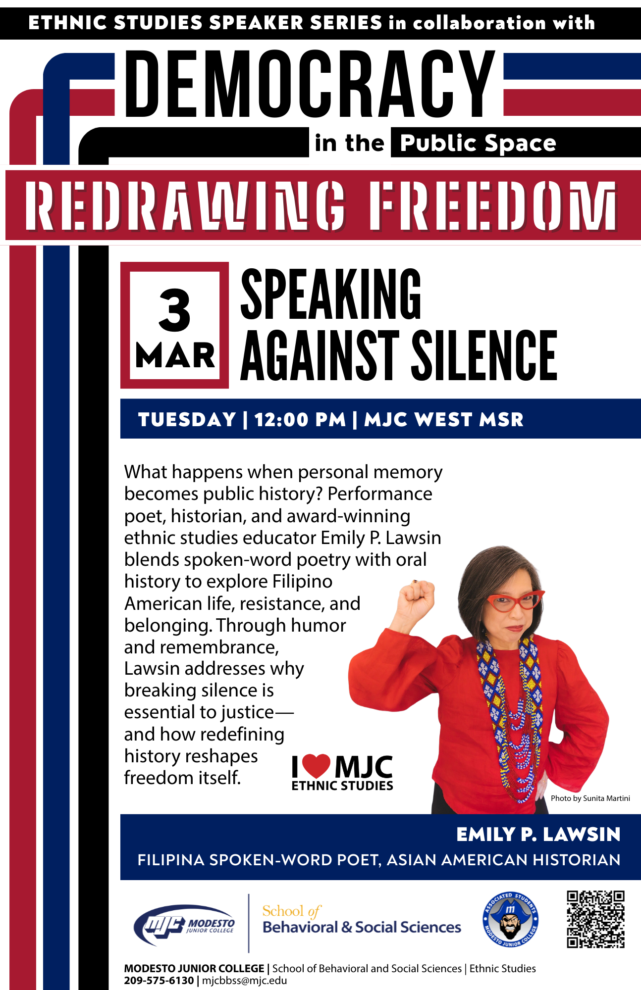 What happens when personal memory becomes public history? Performance poet, historian, and award-winning ethnic studies educator Emily P. Lawsin blends spoken-word poetry with oral history to explore Filipino American life, resistance, and belonging. Through humor, remembrance, and power, Lawsin addresses why breaking silence is essential to justice—and how redefining history reshapes freedom itself.